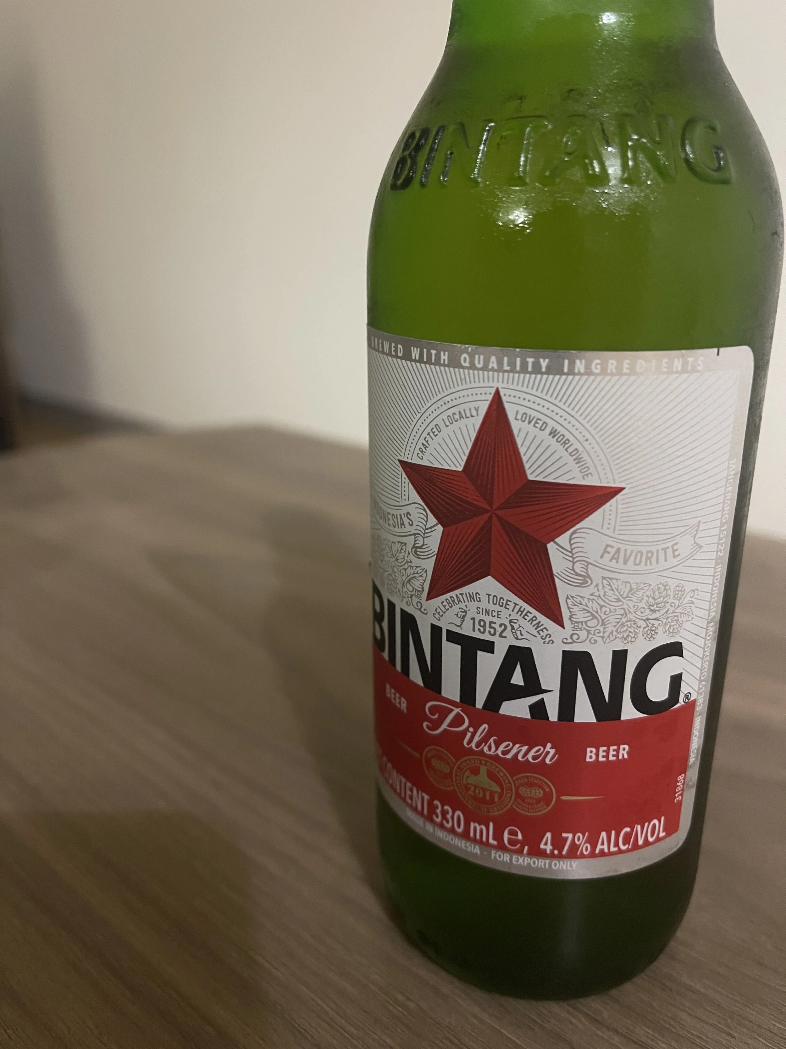 I walked into a random store today and found an international beer section, and of course, I had to look at it. From there, I found a very familiar beer that a lot of Australians would know. Bintang is a beer brewed in Bali, and Bali is a very popular tourist destination for Australians. So I have tried this before but not for a few years. So this week, I am trying Bintang by Multi Bintang Indonesia (owned by Heineken)
