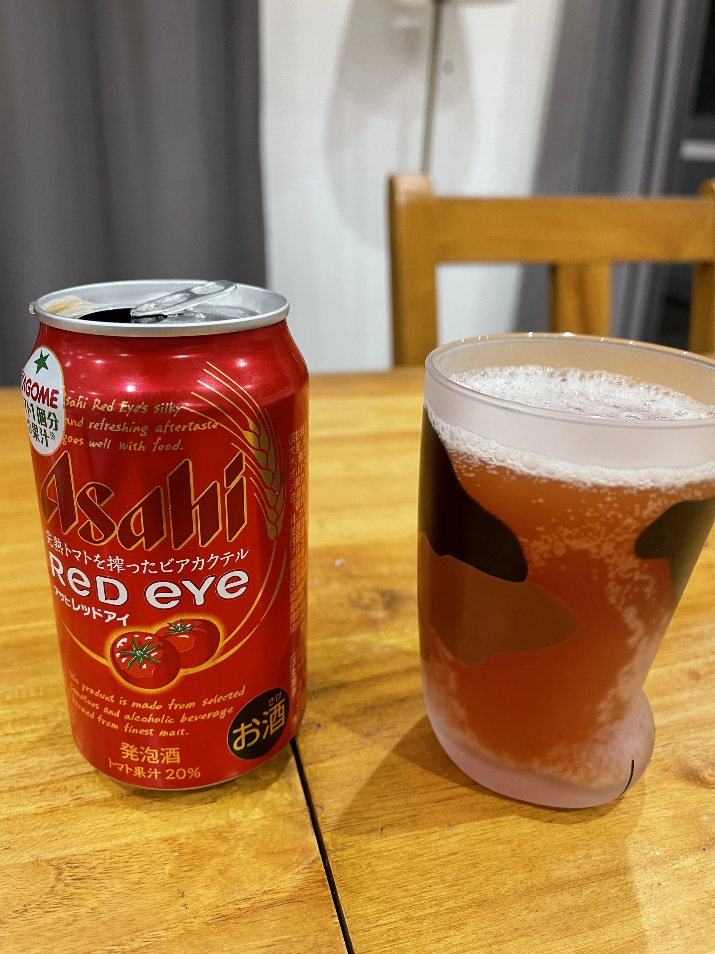 It’s coming up to trick-or-treat time, and I have been tricked. This is a tomato-based beer using 20% of Kagome tomatoes. I also decided to use my cat leg glass to add a spooky action to the review. I am not happy to try this, but this week I am trying Asahi’s Red Eye.